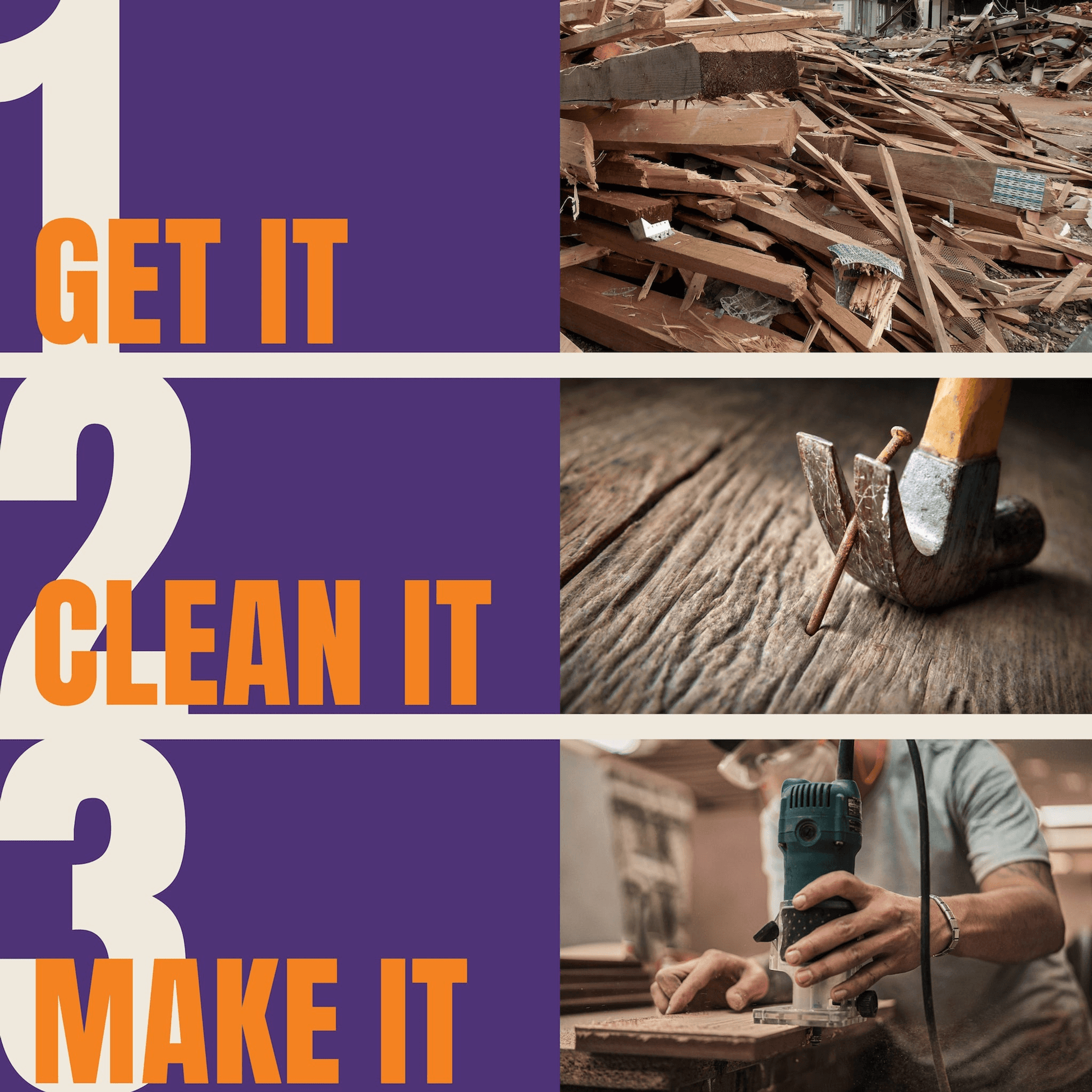 Jedes Stück wird in San Francisco gefertigt – aus sorgfältig ausgewähltem, recyceltem Holz, das aufbereitet, gereinigt und zu einem hochwertigen Unikat verarbeitet wird.